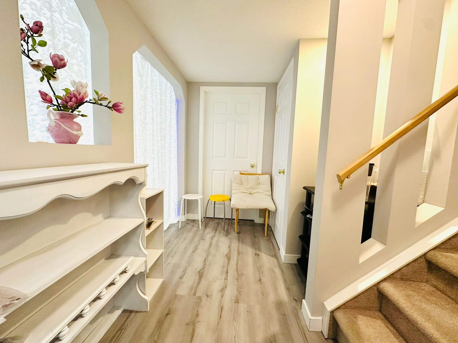 Our bright and welcoming studio features automatic and standard lighting at the entrance. The waiting area offers comfortable seating, tea, and charging stations for your convenience.