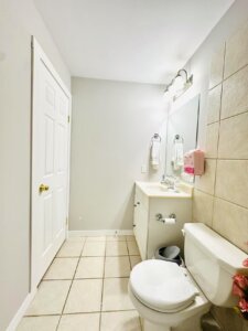• Restroom with hot shower and bathtub